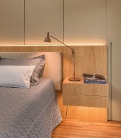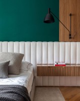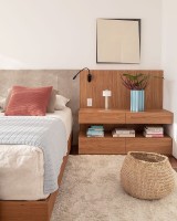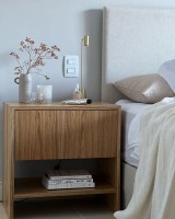 Подвесные прикроватные тумбы придают спальне на пике моды сегодня и придают стильный и минималистичный вид. Под ней легко проводить уборку. Со временем при необходимости можно перевесить и таким образом поменять высоту, если она оказалась не удобной или адаптировать под новую кровать. Можно также добавить скрытую подсветку для эффекта парения. Подвесная модель отлично подходит для стиля сканди, джапанди и минимализм, так как эти стили ценят минимализм и простоту, акцентируя внимание на функциональности и натуральных материалах.